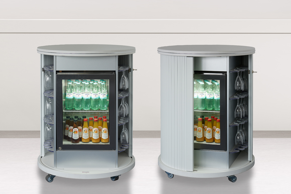 Viel schöner als jede Minibar. Nach den Prinzipien des Minimalismus entwickelten wir diesen wirklich praktischen Kühlpräsenter für viele Gelegenheiten: als mobile Verkostungsstation am POS, auf Messen, Kongressen und Events, als rollbare Selbstbedienungsbar, als Cateringcenter in Konferenzräumen, Tagungszentren, Lounges und Entrees oder einfach als Stilikone mit ausgeprägtem Praxisbezug.