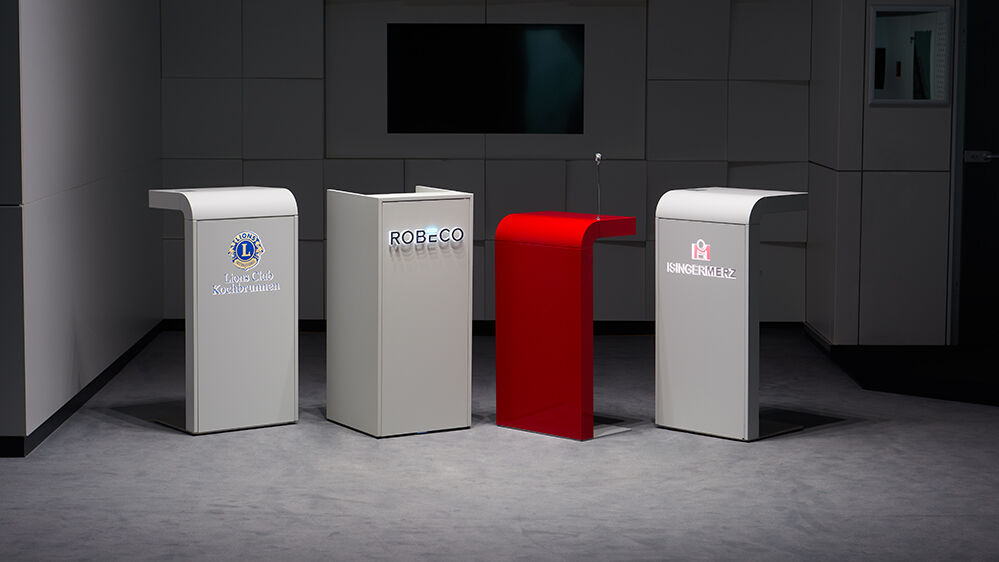 Schlichte Eleganz und ausgefeilte Technik vereinen unsere bewährten, aber immer wieder neu gestylten und weiterentwickelten Rednerpulte. Für den exponierten Einsatz bei Konferenzen und allen Formen der Publikumsansprache sind sie nicht nur repräsentativer Blickfang mit Imagewert, sondern auch voll mit leistungsfähiger Kommunikationstechnik.