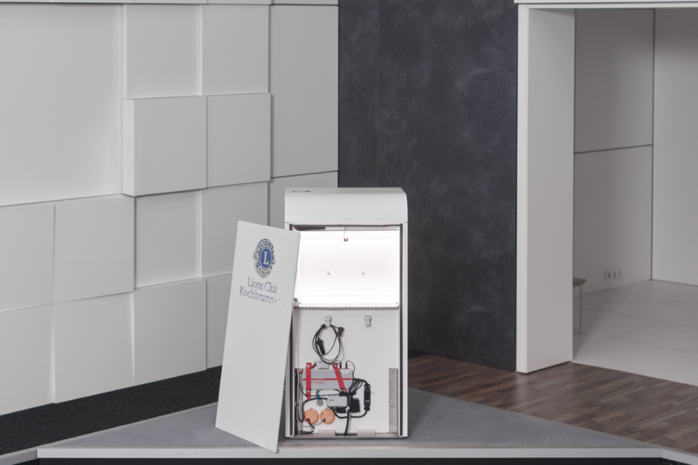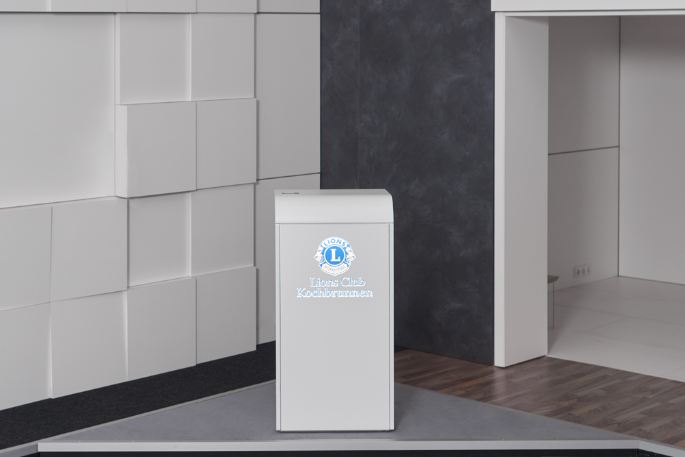 Von professionellen Nutzern geschätzt wird besonders die Individualisierbarkeit in Farbe und Branding, die letztlich das Möbel in Kombination mit dem platzsparenden Pkw-Transport auch zum beliebten Begleiter für einen permanenten mobilen Vortragsbetrieb macht.