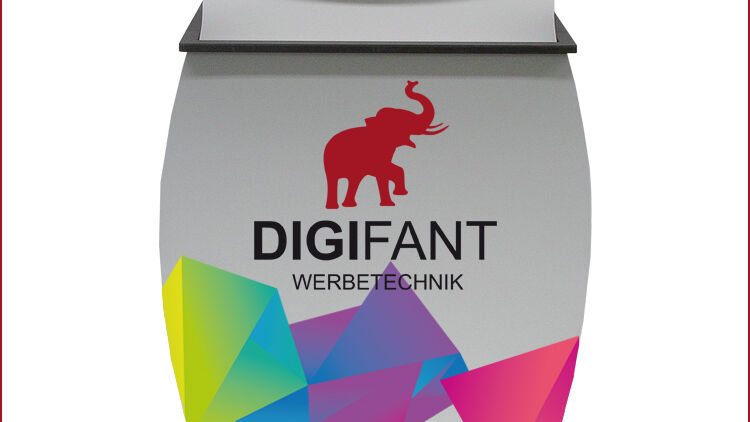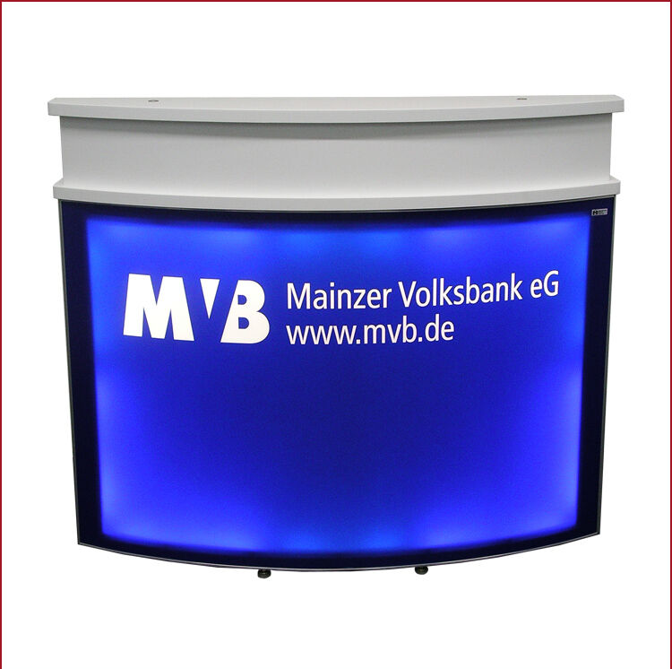 mit verschiedenen Thekenaufsätzen, abschließbarem Stauraum und unterschiedlicher Grafikanbrigung lieferbar